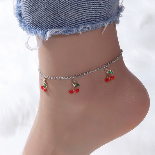 Fashion Charm Red Cherry Anklets for Women Silver Color Chain Adjustable Bracelets Anklet Ankle Jewelry Beach Party Gifts